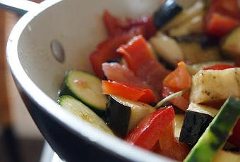 RatatujaStamattina ho rovistato nel frigo, era qualche giorno che non cucinavo a casa, e ho trovato che le verdure stavano un po' appassendo...dopo aver fatto una cernita, ho affettato due zucchine, due melanzane, un peperone e un pomodoro, direttamente nella padella antiaderente ceramicata. Ho aggiunto uno spicchio di aglio schiacciato con la lama del coltello di piatto, qualche foglia di basilico e un cucchiaino di olio extra vergine di oliva. Girato le verdure, messo il coperchio e infornato tutto in forno caldo a 210° ventilato. Dopo circa un quarto d'ora il profumino della ratatuja si spande per casa ed è una delizia.