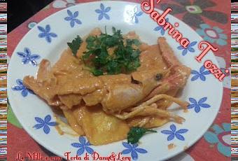 -500 GR DI RAVIOLI RICCOTTA E SPINACI -500 GR DI SCAMPI FRESCHI- -MEZZO BICCHIERE DI KETCHUP -1 CONFEZIONE DI PANNA DA CUCINA -1 CUCCHIAIO DI MAIONESE -1 CUCCHIAIO DI CONSERVA -OLIO EVO QB -2 SPICCHI AGLIO -SALE -PEPERONCINO -PREZZEMOLO