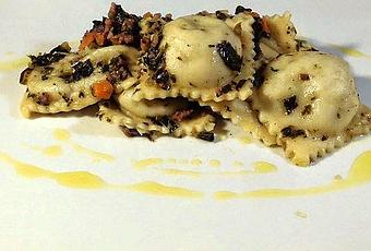 Prendo la mia raviolatrice di plastica, che ho trovato in un giornale di cucina anni fa e che ha avuto un successone pauroso, meglio delle raviolatrici che costano più di 20 euro, e facciamo i ravioli, chi vuole vedere il procedimento può andare QUI. Una volta finito, siamo pronti per cucinarli e impiattarli.