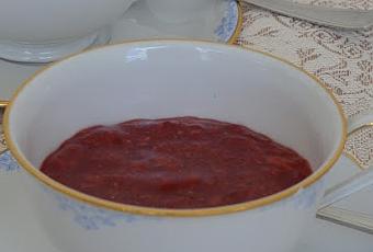 Lavare velocemente la frutta, tagliare a piccoli pezzi le fragole e le ciliegie, cuocerla in una pentola con fondo spesso, con il succo e 2-3 cucchiai di acqua.