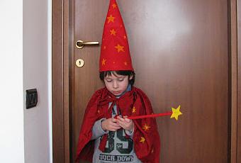 Dalle nostre parti si festeggia il carnevale ambrosiano, quindi fino a sabato via libera con costumi e coriandoli! Per la festa di ieri dell'asilo abbiamo realizzato un costume veloce veloce da maghetto con tanto di bacchetta!