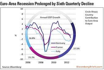 L'area euro è in recessione dall'ottobre 2011 : la più lunga recessione dalla nascita dell' Unione ... mmmhh, così giovane e già così in difficoltà?