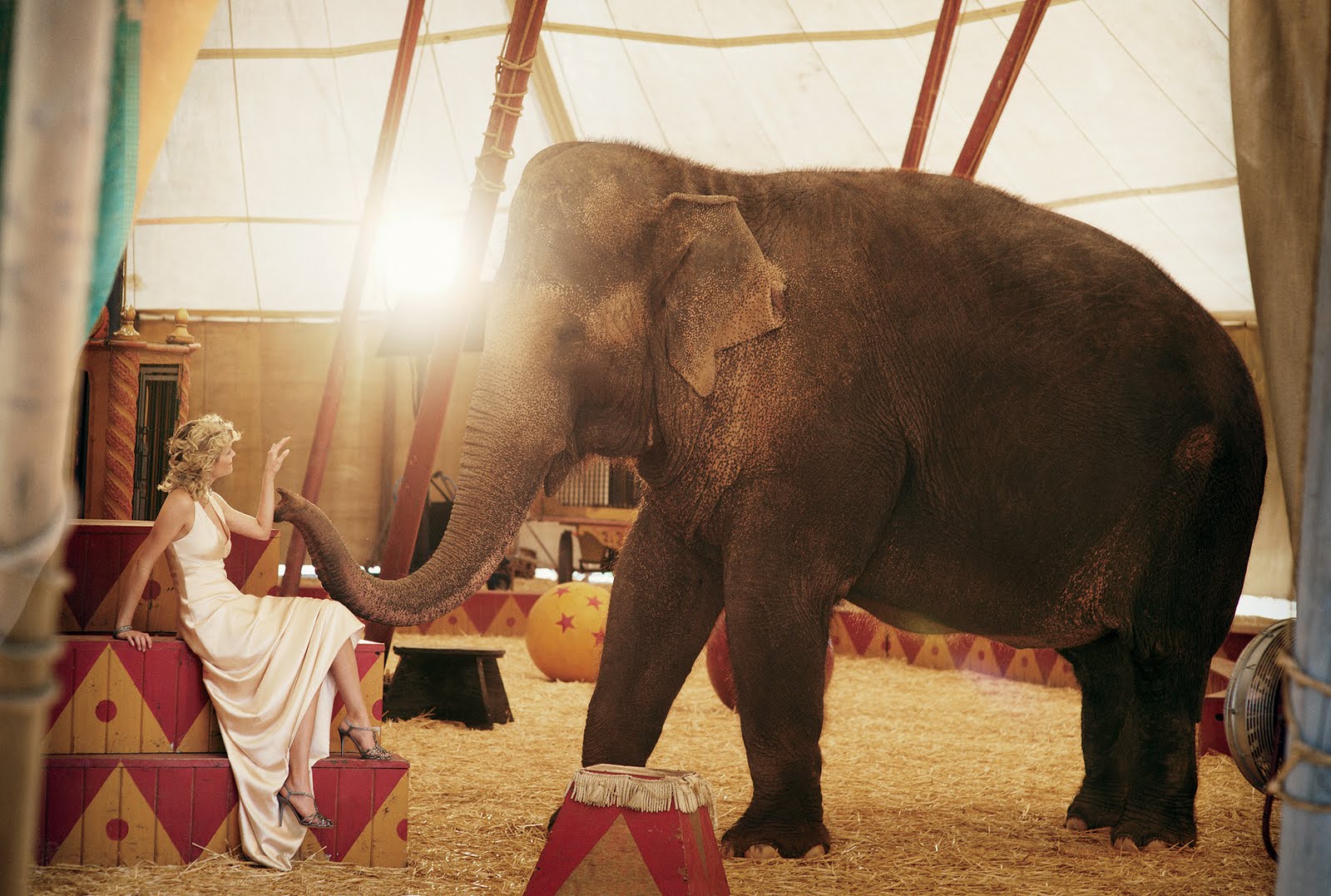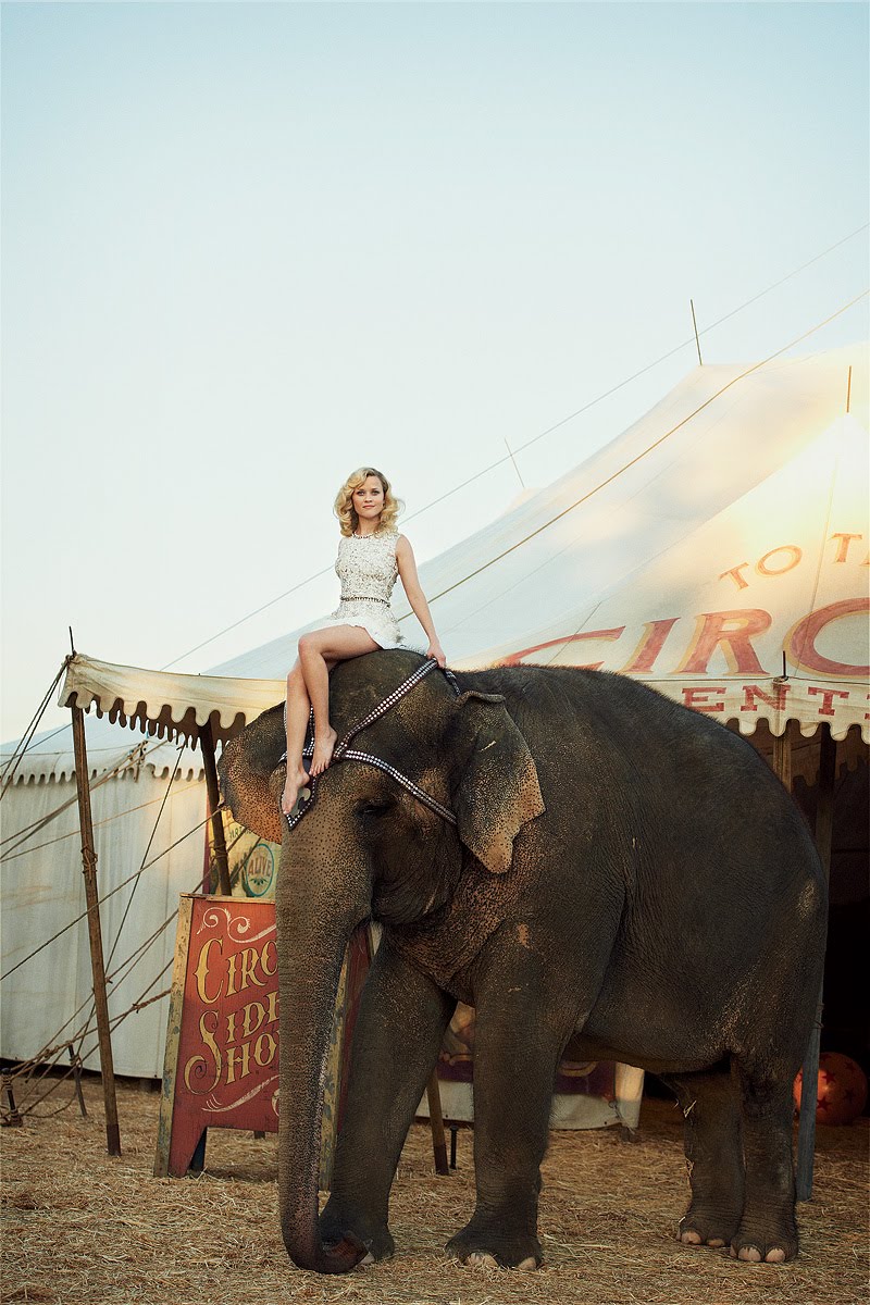 Le prime immagini sono dal numero in uscita, dove Reese è fotografata insieme a gli amici elefanti da Peter Lindbergh.