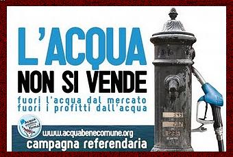 Si potrà dunque fare il referendum su una legge che reputo odiosa e in certi punti addirittura priva di umana decenza, come quella sulla privatizzazione dell’acqua. Tremo all'idea che i miei concittadini disperino di modificarla e lascino perdere le schede e i seggi. Tremo all'idea che nessuno li informi in modo esauriente su quello che potranno decidere. Sono terrorizzato all'idea di quello che potrà uscir di bocca, a chi ha il potere di parlare a voce alta, per rendere il meno comprensibile possibile quello che, a fatica, siamo riusciti a capire.