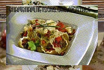 - Coprite, abbassate il fuoco al minimo e cuocete a bagnomaria le erbe per 10 minuti. Tritate grossolanamente i pomodori secchi ben sgocciolati dall’olio in cui sono conservati.