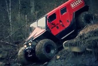 Il veicolo mostruoso in questione è prodotto dalla Ghe-o Motors e si chiama Rescue, un mezzo nato principalmente come mezzo di soccorso (il nome “Rescue” è chiaro su questo punto) in grado di trasportare fino ad 11 persone su quasi ogni genere di terreno e con qualsiasi tipo di condizione atmosferica.