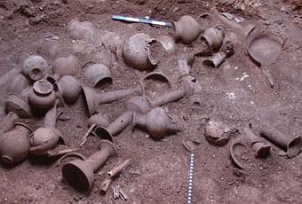 Tra i reperti sono stati ritrovati manufatti come ceramiche, piatti, tazze sempre dell'Età del Bronzo (2150-205 a.C.), oltre ad un frammento di osso decorato con forme geometriche, una punta di lancia, un martello, una statuetta forgiata a forma di toro, un braccialetto, una collana e delle perline.