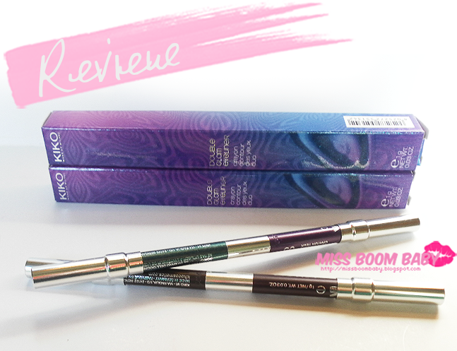 Come promesso ecco la prima review degli ultimi acquisti in saldo (preview qui). Inizierei subito con un prodotto che sono piaciuto molto: le matite Double Glam di KIKO, fanno parte dell'edizione limitata Light Impulse Future Make Up, sono disponibili in 6 colori tutti riedizione bestseller tranne la 09 che è una novità 2011. Le ho trovate in saldo la 05 (viola e verde con glitter) e la 09 (prugna intenso e marrone freddo). Mi sono piaciute entrambe molto ma ve le consiglio solo per un uso sull'esterno degli occhi, non li consiglio per un uso nella rima interna...ma veniamo ai dettagli.
