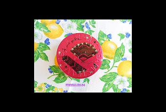 La crema si presenta in una deliziosa confezione di latta color fucsia. La parte inferiore, della confezione, ha disegnato un pizzo nero mentre la parte superiore un ventaglio e dei guanti. Sempre sulla parte superiore, troviamo, la scritta della marca in rilievo.