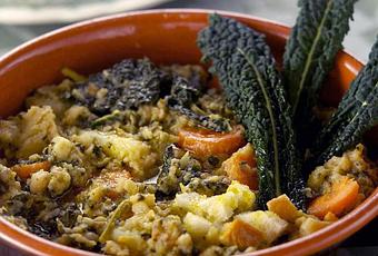 RIBOLLITA: chi l'avrebbe detto che la minestra di magro avanzata dal giorno prima nelle case dei contadini sarebbe diventata una specialità gastronomica nella società dei consumi? La ricetta delle massaie campagnole era istintiva e usava quello che c'era sottomano, cioè pochissimo: pane, soprattutto, qualche odore, cavolo verzotto e cavolo nero, qualche patata e una carota, fagioli lessati e il loro bel brodo profumato.