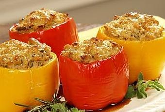 Con il composto ottenuto imbottite l’interno di ogni peperone e disponeteli su una teglia da forno. Salate e condite con un filo d’olio extravergine d’oliva.