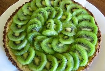 Sbucciare i rimanenti kiwi e tagliarli a fettine disponendoli sulla crostata leggermente accavallati fino a coprirla interamente.