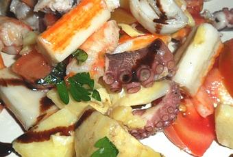 1) Mettete sul fuoco una pentola piena d’acqua, dopo qualche minuto salatela e quando bolle mettete a cuocere le patate intere con tutta la buccia e il polpo, lasciate bollire per 20 minuti, poi aggiungete le mazzancolle, attendete altri 5 minuti e poi unite i moscardini, lasciate cuocere altri cinque minuti e spegnete il fornello. A questo punto – a fuoco spento – aggiungete i bastoncini di surimi (sì lo so chiamarlo pesce è una follia…però è tanto sfizioso, noo?) e attendete 3-4 minuti.