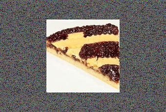 Distribuite sulla base il composto di amaretti. Sistemare sul ripieno delle strisce di pasta a formare una grata, accavallando le une alle altre.