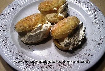 Mettiamo sul tavolo la farina 00, aggiungiamo il sale e la farina manitoba, sciogliamo il lievito nell’acqua tiepida e incominciamo a impastare, quando l’impasto risulta amalgamato, lasciamo lievitare coperto per circa 1 ora. Riprendiamo ora l’impasto lievitato e stendiamo la pasta con un mattarello dello spessore di circa 2 centimetri, ritagliamo con un coppa pasta dei dischi che lasceremo lievitare coperti per 1 ora. Mettiamo la panna nel congelatore per 5 minuti per raffreddarla bene, poi uniamo lo zucchero e la montiamo. Avvenuta la seconda lievitazione, friggiamo i dischi in olio caldo girandoli da ambo le parti, li scoliamo su carta da cucina, e li passiamo velocemente (ancora caldi) nello zucchero semolato. Non ci resta che tagliarli a metà, lasciando attaccata l’ultima parte e farcirli con la panna montata che possiamo spolverare a piacere con cacao o cannella.