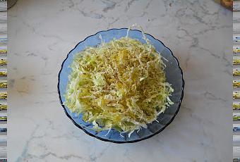 Mettere il cavolo in una insalatiera, condire con olio, aceto, sale, pepe e qualche seme di finocchio.