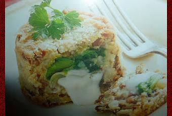 imburrate gli stampini monoporzione distribuite il pangrattato riempiteli con parte del composto preparato distribuitevi sopra la scarola e chiudete con un altro strato di composto cospargete con abbondante pangrattato e distribuite sulla superficie il burro infornate a 200° per 15' lasciate raffreddare sformate il gateau di lenticchie in piatti individuali e servite