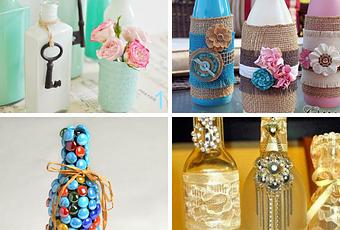 - glitterglueandpaint.com Qui non c'è tutorial ma una marea di modelli diversi, tutti da guardare, in realtà basterà colorare la bottiglia come da tutorial sopra e poi incollare strisce di tessuto e fiori finti, come la fantasia ci suggerisce.