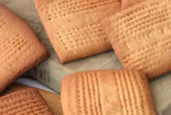 Stendete una sfoglia alta 3 mm e tagliatela con la rotella (liscia) per la pizza a formare dei biscotti rettangolari. Incidete la superficie formando delle righe puntellate aiutandovi con un coltello o con i rebbi di una forchetta.