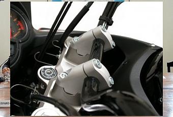 Dopo l’articolo dedicato alla personalizzazione della sella della propria moto, mi pare doveroso parlare anche dei riser (conosciuti pure come “alzamanubrio”). Questi semplici oggetti non sono altro che strumenti per alzare ed eventualmente arretrare il manubrio del proprio mezzo. Lo scopo è presto detto: rendere più confortevole la posizione di guida. All’estero vanno molto di moda specialmente sulle moto sportive, solitamente fornite di manubri (o semi-manubri) piuttosto bassi. Alzando il manubrio si ottiene una posizione in sella più eretta e dunque meno stressante per i polsi e il collo. L’applicazione dei riser può rendersi necessaria anche in seguito al riposizionamento della sella (per esempio quando viene alzata).