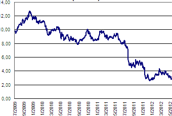 La valutazione del titolo Finmeccanica (dal 05/06/2009 al 01/06/2012)