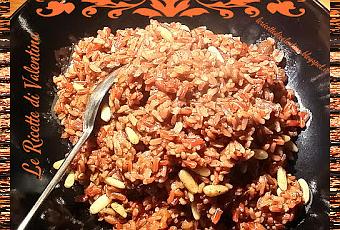 Pilaf, una cottura del riso per ottenere chicchi sgranati, da fare al forno o come in questo caso in un tegame sul fuoco. Questa è una versione che strizza l'occhio all'oriente, grazie all'ingrediente principale, del riso rosso integrale, molto profumato già di suo, l'ho arricchito con spezie, pinoli e uvetta. Servitelo come contorno per del pesce oppure anche da solo sia caldo che freddo come un'insalata di riso.INGREDIENTI per 2 persone: