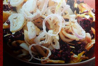 quest'insalata tiepida è fatta con riso venere e seppie pulite