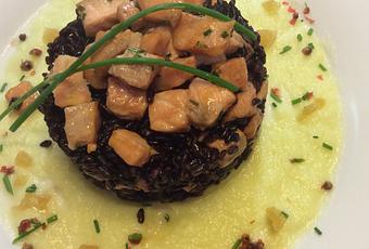 RISO VENERE CON SALMONE SU LETTO DI CREMA DI SEDANO