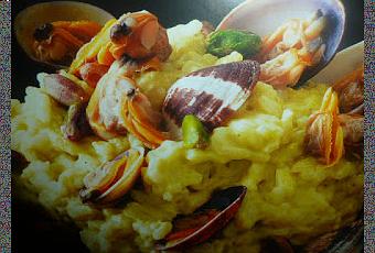 servite il risotto ben caldo decorando con i pistacchi e le vongole con il guscio