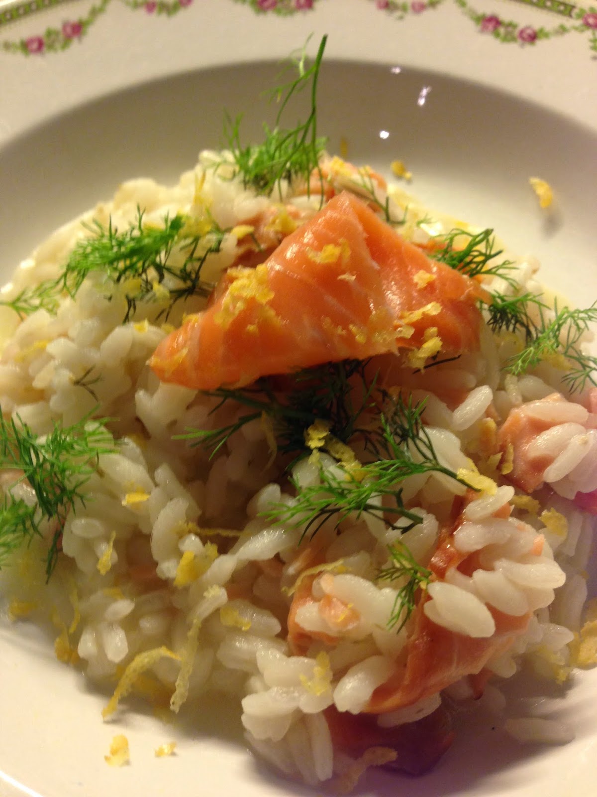 La modalità di preparazione è sempre la medesima di tutti i "sacrosanti" risotti, ma il salmone affumicato, senza ovviamente aggiunta di panna, lo rende leggero e saporito e l' amido contenuto nel riso lo trasforma in un piatto cremoso e gustoso e di grande scena soprattutto se si hanno ospiti.