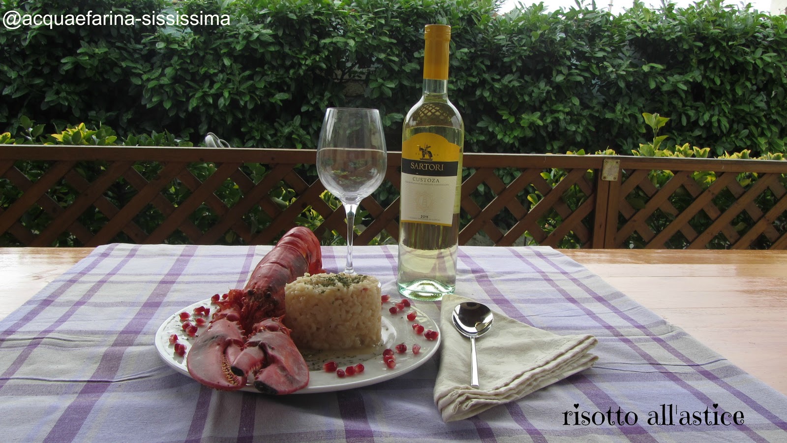 ingredienti per 2 persone 150 gr riso arborio 1 astice gr 500 circa PANAPESCA 1 bicchiere spumante secco 1 scalogno cannella paprika 2 cucchiai olio extravergine di oliva 1 noce burro per mantecare prezzemolo melograno (per decorare) La ricetta la potete leggere direttamente nel sito LE PANARICETTE