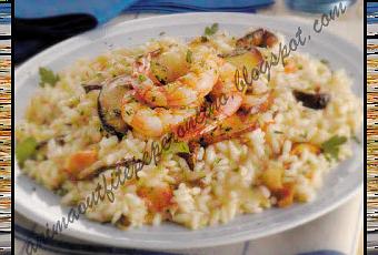 - A due minuti dal termine della cottura unite al riso i funghi e i gamberi. Fuori dal fuoco, guarnite con il prezzemolo tritato finemente. Servite subito.