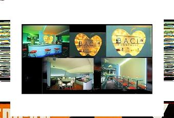 Si parte da Milano: “Baci e Abbracci”, in Via De Amicis, nei pressi dell’Università Cattolica e della Basilica di Sant’Ambrogio, è un insieme di superfici pulite, linee armoniche e colori pastello che si sovrappone ai toni accesi dell’arredamento, l’arancione delle sedie, il blu intenso dei divani, le insolite mele rosse sul fondo azzurro del soffitto e delle colonne.