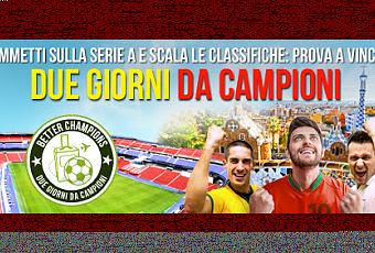 Con Better Champions saranno premiati i giocatori più fedeli di Better facendo vivere ai vincitori “Due giorni da campioni” nella città di un top team europeo e regalando a tantissimi altri utenti bonus validi per scommettere sugli eventi proposti da Better.