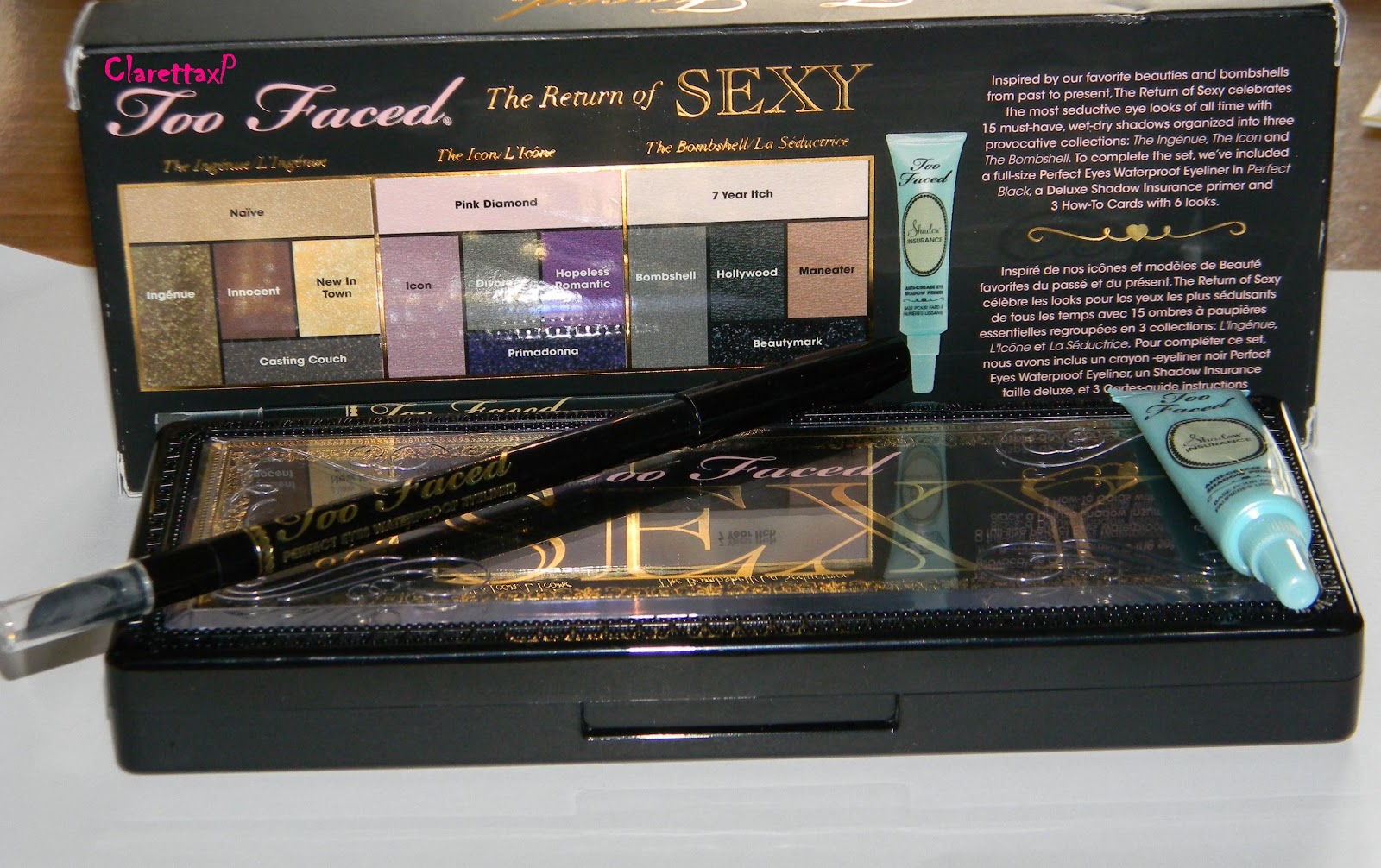 PREMESSA: ciaoooo bellezze, come va?!? Spero tutto bene! Mi scuso con voi per l'assenza di questi giorni e soprattutto per non aver ancora partecipato al post sulla PaciugoPedia (sigh), ma sono un po' incasinata e la scorsa settimana, se non avessi avuto i post già pianificati, non so come avrei fatto xD! Lo so che può sembrar stupido preoccuparsi di tenere aggiornato il blog, ma davvero ci tengo ad avere una certa costanza, dopo l'abissale assenza di alcuni mesi fa =( e soprattutto non voglio abbandonare voi <3! Proprio per questo motivo ho deciso di riproporvi un po' di post che risalgono agli inizi, quando il blog era davvero poco seguito e che quindi non sono stati molto calcolati ;D! Qui di seguito troverete il primo di questa serie che chiamerò Ritorno al passato! Ovviamente nulla è stato modificato, quindi mi scuso per il tono un po' freddo, ma all'inizio riuscivo ad aprirmi con difficoltà D= ! Oooook, detto ciò, io vi lascio al post, augurandomi che questa mia idea possa essere di vostro gradimento <3 Un bacio enorme Salve a tutte mie care donzelle, qualche mese fa sono andata da Sephora perchè avevo il 20% di sconto e volevo approfittarne per comprare alcune cose necessarie, alias fondotinta e mascara! Ovviamente, però, il mio sguardo si è subito posato sulla nuova arrivata in casa Too Faced, la palette The return of Sexy, e, esortata dal mio ragazzo che ha visto quanto ero rimasta colpita, ho deciso di acquistarla! Il costo è di 44 euro, che non sono pochi ma, ragazze, io la A D O R O letteralmente! Insieme alla palette troviamo anche una mini size di Shadow Insurance e la matita in full size Perfect black, oltre che i classici cartoncini con le istruzione per creare diversi look con questi favolosi ombretti!!! Prima di parlarvi della palette voglio spendere qualche parola sulla matita: è nerissima, super intensa, resistente alle lacrime e molto facile da sfumare anche se, una volta che si è fissata, non si muove più dalla palpebra o dalla waterline, infatti è un po' difficile da struccare!Un altro punto a favore di questa matita è lo sfumino, molto particolare in quanto angolato e assolutamente perfetto per creare una linea di eyeliner più delicata, ma comunque definita! In sintesi ve la straconsiglio! Se siete interessate ad acquistare solo questa il suo costo è di 18,50 euro. Sulla Shadow Insurance non ho molto da dire, è sicuramente un'ottima base, ma, in commercio, se ne trovano molte più economiche ( la full size costa 16,50 euro ) che sono altrettanto buone! Ora direi che possiamo dedicarci completamente a questa meraviglia! Iniziamo col dire che può essere divisa in tre mini palette: la prima sui toni del marrone e dell'oro, la seconda sui toni del viola e la terza sui toni del grigio/nero! Prima di mostrarvele nel dettaglio, vi parlo in generale della qualità delle polveri! Allora, la maggior parte di questi sono shimmer,satinati o mat con glitter, non ci sono colori opachi, ma io credo che proprio in questo stia la particolarità, in quanto, questa palette, vuole essere "il ritorno della sensualità" e quindi, cosa può far brillare meglio una donna se non il giusto tocco di luce e intensità sugli occhi? La texture degli ombretti è molto morbida, leggermente polverosa, ma comunque gestibile! La pigmentazione è ottima, i colori sono vibranti e molto luminosi ed inoltre, possono essere usati anche bagnati, il che li rende ancora più intensi e sfaccettati! La durata è davvero eccellente in quanto restano fissi e brillanti tutto il giorno, questo ovviamente con una base, non ho mai provato ad utilizzarli senza primer, quindi non so dirvi come si comporterebbero!Vediamo adesso le singole palettine e gli swatch: Colori magnifici, perfetti per un look sofisticato ma d'effetto sia di giorno che di sera, infatti anche se sono toni della terra, li trovo molto particolari e unici! Trovo questa combinazione di ombretti semplicemente perfetta per risaltare ogni colore d'occhi! Adoro Icon perchè penso sia adattissimo anche per essere utilizzato da solo!- The Bombshell/La Séductrice