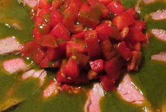 Una semplice salsina ottenuta frullando a lungo basilico, prezzemolo e cerfoglio con olio extravergine, un pizzico di sale grosso e poco pepe dona a questo classico roastbeef nuove e fresche sfumature. La dadolata di pomodoro maturo completa questo piatto allegro e facile da preparare. Ricetta idonea anche a intolleranti al glutine, ai latticini e all’uova, potrte trovarla anche nella sezione La cucina intollerante.