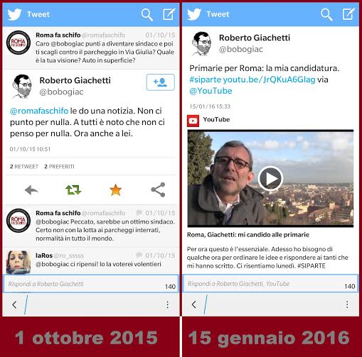 Aspettiamo di capire dove. Per ora le premesse sono tristi. Come ogni politico medio Giachetti smentisce se stesso (guardate la ricostruzione qui sopra, prima e dopo la richiesta del grande capo). Poi la butta sulle periferie come se fossimo dal barbiere. Nel mezzo c'è stato, come riportano i nostri tweet qui sopra, un pronunciamento a sfavore del Parcheggio interrato di Via Giulia. Peccato che per cambiare (non dovevamo cambiare?) questa città deve innanzitutto affrontare i temi relativi al suolo pubblico. Una delle principali strade per risolvere è quella di un governo radicalmente diverso della sosta. E lo si fa realizzando parcheggi interrati. Giachetti che ne pensa? 6. "Non bisogna cambiare città, ma bisogna cambiare questa città"