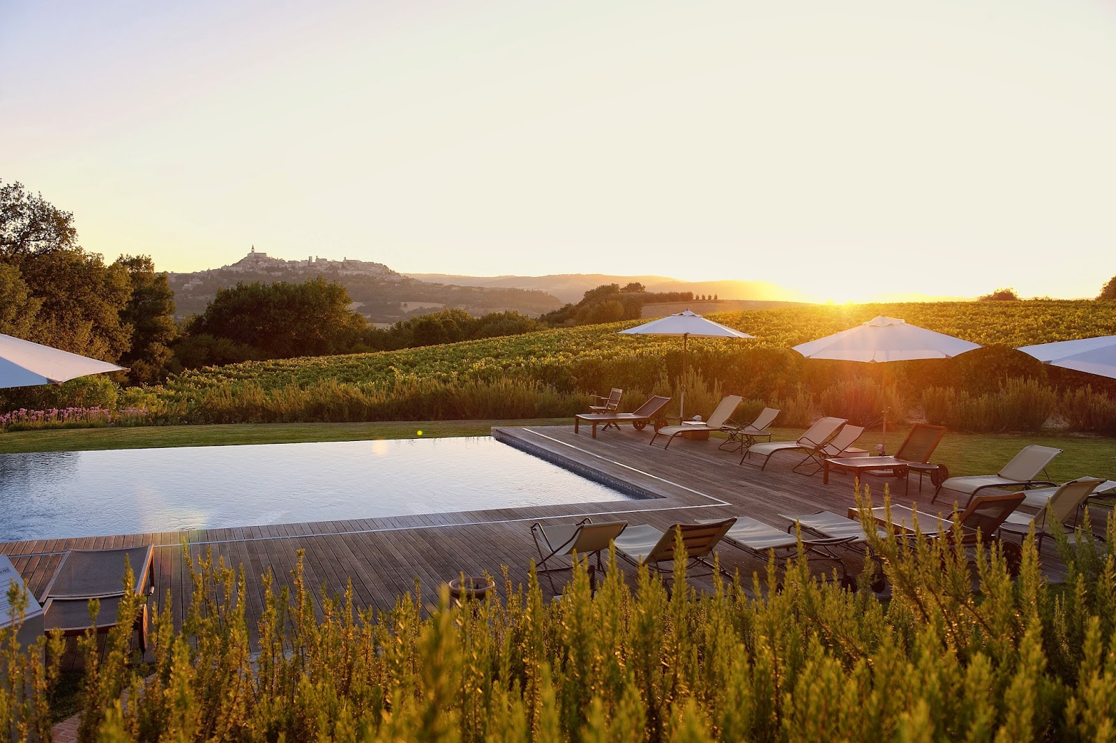 Così Roccafiore, il country chicresort che nasce sulle colline tuderti incarna queste caratteristiche, in quanto luogo in cui godersi splendidi tramonti con lo skyline medioevale di Todi e una piscina a sfioro sui vigneti, proprio come una rivisitazione contemporanea di un quadro tipico del Romanticismo.