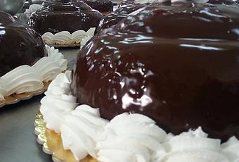 Nel frattempo preparare la glassa di copertura al cioccolato. Mettere tutti gli altri ingredienti. Far raffreddare per bene la glassa e procedere a glassare il babà e decorare con panna. Sistemare in freezer. Tirare fuori il babà almeno mezz’ora prima di consumarlo, distribuire poi su ogni fetta un poco di sciroppo rimasto.