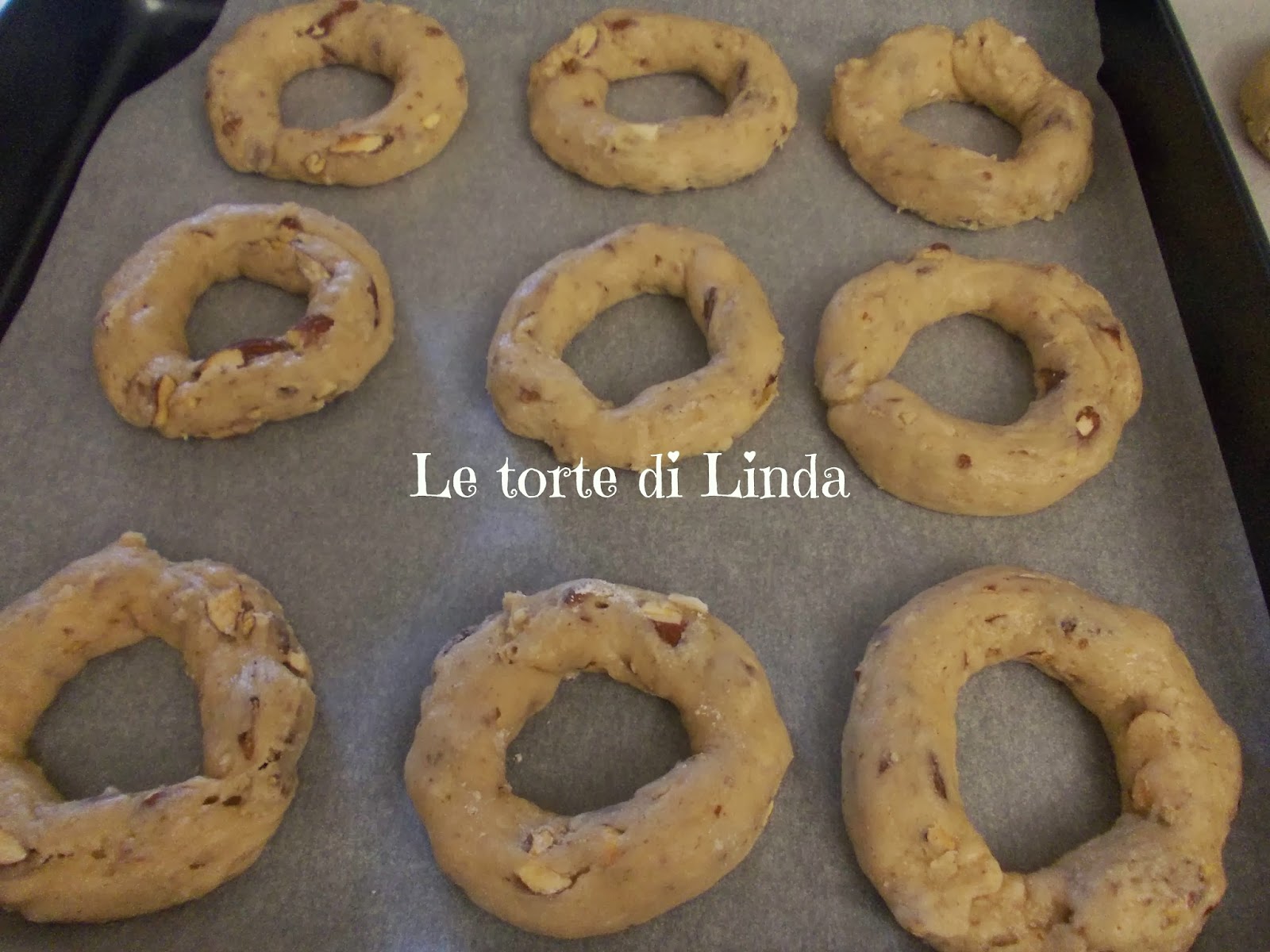 ... adagiateli sulla placca del forno ricoperta dalla carta forno, creando delle ciambelline.