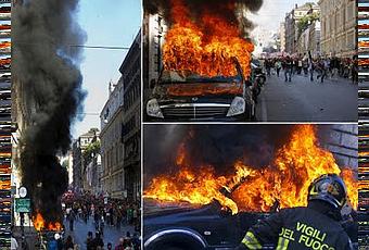Roma: la protesta degli indignati alla fine si é rivelata per quello che é: solo violenza per il gusto di distruggere...un susseguirsi di atti di vandalismo puro all'ennesima potenza! Ora aspettiamoci pure le critiche contro le forze dell'ordine e la santificazione di questa protesta da parte della Sinistra!bravi, bravi!