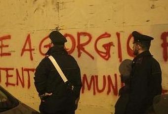 Roma, è mistero. In via dello scalo di San Lorenzo, a pochi metri dallo svincolo della Tangenziale Est appare una scritta. “Onore a Giorgio Frau, combattente comunista San Lorenzo”. La scritta sarebbe lunga circa 4 metri, le lettere sarebbero alte 40 centimetri. A termine della frase la storica firma con la classica stella a 5 punte delle Brigate Rosse.