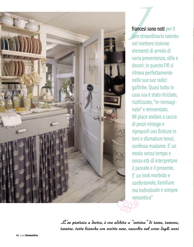Ha detto : " Mi piace andare a caccia di pezzi vintage e riproporli con finiture tenui.... E' un modo senza tempo di interpretare il passato ed il presente... " ♧♧♧ " In ogni luogo cerco di cogliere nell'oggetto una richiesta d'amore. Poi basta qualche cura, una passata di vernice ed il gioco è fatto! "