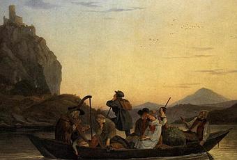 Il dipinto che vedete qui venne accolto con entusiasmo dai contemporanei e costituisce ancora oggi uno dei più popolari di Richter, probabilmente ispirato ad una delle tante escursioni sulle montagne boeme. Nel suo quadro il pittore cerca di raccogliere tutte le età della vita, dall'infanzia alla vecchiaia: la figura del giovane viandante che alza lo sguardo verso le rovine del castello esprime al meglio il sentimento romantico della nostalgia (in tedesco esiste una parola precisa e di difficile traduzione per definirlo sehnsucht); l'osservatore si identifica con questa figura, ritratta di spalle (come il viandante di Friedrich), mentre il vecchio cantore rievoca il tempo che fu. La barca sembra troppo piccola per poter trasportare il carico umano, e appare fissa al centro della corrente del fiume. Il formato dell'opera che ricorda una pala d'altare con il margine superiore arcuato, tende a sottolineare la sacralità e il carattere celebrativo della composizione.