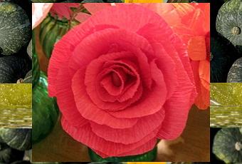 Per realizzare questa rosa di carta avremo bisogno solo di carta crespa rossa, carta crespa verde, forbici, colla, una matita ed un bastoncino.Prendiamo la carta crespa rossa e pieghiamola in otto o più parti.Su questo pezzo di carta piegata dobbiamo disegnare con attenzione una perfetta forma di petalo; realizzato il disegno potremo ritagliare la carta ottenendo un considerevole numero di petali che andremo a ritoccare dandogli la forma che vogliamo ottenere con le dita ed aiutandoci con un bastoncino attorno al quale arrotolare i petali per dargli una forma piegata.Ripetiamo tutta questa fase iniziale fino ad ottenere il numero di petali che desideriamo, considerando che è meglio abbondare il più possibile.Attorno al bastoncino incolliamo la carta crespa verde ed incolliamo gradualmente i petali ad un'estermità, nel fare questo dobbiamo stiamo attenti a dare la forma più armonica possibile alla rosa.Infine possiamo incollare dei dettagli come qualche foglia sullo stelo e un sepalo ottenuto tagliando una striscetta di carta crespa verde a zig-zag.