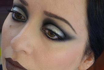 L'idea è quindi quella di simulare, seppure in chiave stilizzata e moderna, un trucco anni 20, con tanto di occhioni fortemente marcati a spiovente, e di utilizzare solo una scala di neri e di grigi per riproporre l'effetto di una vecchia pellicola. Per realizzarlo bastano pochissimi prodotti ed è molto semplice: con un ombretto nero ho contornato tutto l'occhio, sollevando ad arco la parte concava dell'occhio vicina all'attaccatura del naso, in modo da accentuare un'espressione melodrammatica. La palpebra mobile invece l'ho illumanta giusto al centro con un ombretto argento (Platinum di Mac). Nella rima interna ho usato una matita color platino/argento, ovvero la Gold Leaf di Wjcon (che, come ben si vede, non è per niente "gold"). Sulle labbra la matita Stone di Mac scurita con un tocco di rossetto nero (quello di Kiko).