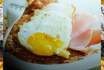 ecco pronto il vostro rostì di patate servite con prosciutto e le uova
