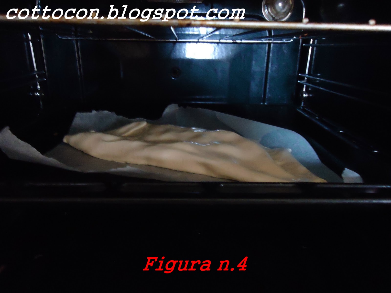 Arrotolate la pasta sfoglia e sigillate i bordi con le mani e poi con dell'acqua fredda o se preferite con dell'albume.(Fig. n.3)Mettete in forno a 180° per 30 minuti controllando i tempi di cottura (Fig. n.4)