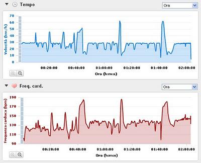 Ecco in sintesi il mio allenamento di oggi, sembra un messaggio criptico ma in realtà è molto più semplice di quello che può sembrare.Come avevo premesso qualche giorno addietro, per il prossimo futuro, vorrei ritornare alle origini, cioè allenamenti brevi e molto intensi fatti possibilmente con criterio e metodo.In pratica dopo 40 minuti a fondo lungo di 130 Bpm con la resistenza a 1 del rullo ho fatto il riscaldamento, ogni 10 minuti ho fatto 1 minuto a 45 km/h per preparare l' organismo.Premetto che oggi non ho seguito un programma preciso, ma avevo semplicemente voglia di fare dei test e delle prove in modo da avere dei parametri sui quali confrontarmi nei prossimi giorni.Ritornando all' allenamento, dopo 40 minuti ho fatto la prima prova, in pratica volevo simulare un inseguimento su Pista, in pratica 3 Km a crono.Ho indurito il livello del rullo su L2 che mi sembra più realistico e con partenza da fermo mi sono "sparato" 3 km a blocco, il tempo è stato di 3 minuti e 52 che se fosse reale sarebbe molto buono, in realtà non l' ho mai fatto quando ho provato su Pista all' aperto, ma "forse e ripeto "forse" a Montichiari potrebbe essere più abbordabile come realtà.Finito il test, ho atto altri 30 minuti di recupero attivo pedalando sempre a L1 con il 53 x21 a 90 Rpm sempre a Fondo lento sui 130-140 Bpm.30 minuti sono stati sufficienti per recuperare e per essere pronto al secondo test che avevo intenzione di eseguire, cioè il Km da fermo.Resistenza a L2 e rapporto fisso 53 x14, qui però ho fatto un improbabile 1.04 che è assolutamente irrealistico, pertanto dovrò fare una prova differente in futuro, cioè partendo dal tempo misurerò quanta strada percorro, in modo da avere uno sforzo di almeno 1 minuto e 10 secondi.Altri 30 minuti di riposo e in fine ho provato per la prima volta in vita mia un protocollo di Tabata, adesso non spiegherò di cosa si tratta dettagliatamente, ma in sintesi si tratta di fare degli sprint continui e brevi con pochissimo recupero, in pratica si fa una volta massimale di 10 secondi e poi per 20 secondi non si pedala, per poi ripartire con un nuovo sprint.In tutto questa prova dura 4 minuti, ma ovvio che dopo 4-5 volate le gambe cominciano a non avere più forza e la prova diventa durissima .....Anche se sinceramente da come me l' avevano descritto pensavo fosse pure peggio, sarà che sono ancora ben allenato o sarà che potrei prolungare la volata facendo 15 secondi di sprint e 20 di riposo e addirittura come fanno i prof, 20 secondi di sprint e 20 di riposo, ma sono tutte prove che avrò tempo di realizzare, l' invero è alle porte e i rulli oramai sono caldi.
