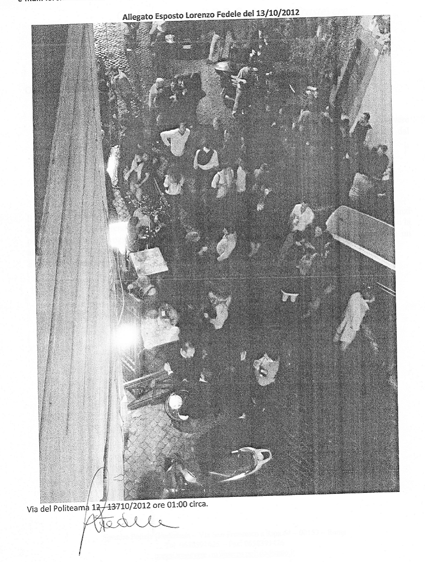 - Malgrado ciò, tutto proseguiva come prima e lo scrivente depositava un nuovo esposto alla stazione dei carabinieri di Trastevere in data 11 giugno 2012; - Il 20 luglio 2012 inoltre lo scrivente querelava l’amministratore della società che gestisce il Nylon alla procura della repubblica di Roma, evidenziando che il suddetto locale sembrava godere di speciali immunità da parte di organi preposti al controllo e di autorità locali.